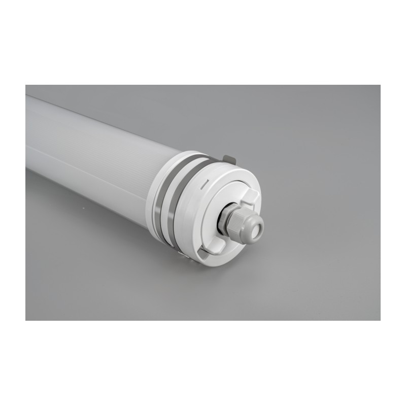 IP69K Wattage schaltbare Rohrleuchte mit korrosionsbeständigem und UV beständigen Korpus und Diffusor - entwickelt für anspruchsvollste Anwendungen im Innen- und Außenbereich. IP69K IK10 zertifiziert und speziell entwickelt für Umgebungen, die intensive Hochdruck- und Heißwasserreinigung erfordern. Integrierter, flimmerfreier, nicht dimmbarer Treiber mit IP69K Kabelverschraubungen an beiden Enden sowie 3-poligen Push-Klemmen für eine schnelle und sichere Durchgangsverdrahtung. Wird mit 316 Edelstahl Montagebügeln für eine unkomplizierte Anbaumontage geliefert. UV-beständig und geeignet für den Einsatz in ungeschützten Außenbereichen bei Umgebungstemperaturen von –20 °C bis +45 °C.