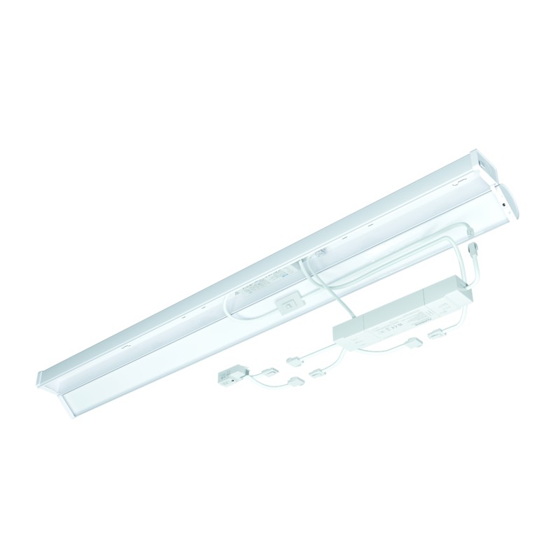 Colour & Wattage Switchable high-efficiency (150lm/W) LED Battens with opal diffuser for even and uniform light distribution. Modular plug and play solution allows simple product extension on construction site by installing Microwave Sensor and/or Emergency Selftest Modules. Integrated flicker-free non-dimmable driver with loop in loop out connector for simplified and fast installation, knockouts on both ends for cable entry. 2 Wattage and 3 Colour Selections available for ultimate flexibility in every application and perfect retrofit solution for single and twin fluorescent fittings. Options: Microwave Sensor with 108° detection beam and range up to 4 meters. Emergency Pack 2.5W with Selftest function.