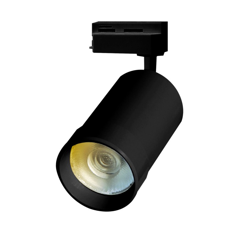 Colour Switchable circuit track LED Spotlight with adjustable beam angle for maximal flexibility in retail environments. Colour Switch located on back-site of Trackhead for simple adjustment of colour temperature between 2700K, 3200K and 4000K even after initial installation. Beam angle adjustment and focusing through rotating front-cap between 60°, 38° and 24°. Different dial scale stand for individual aperture. 330° horizontal and 90° vertical adjustment to adapt to changing points of sales environments in stores. Available for both single and three circuit track.
