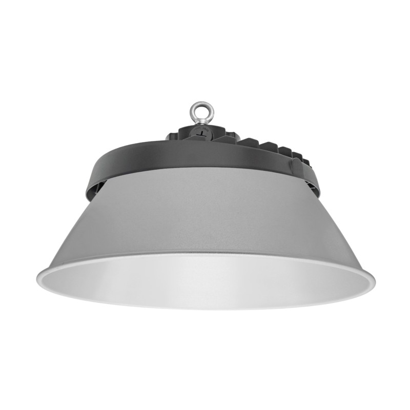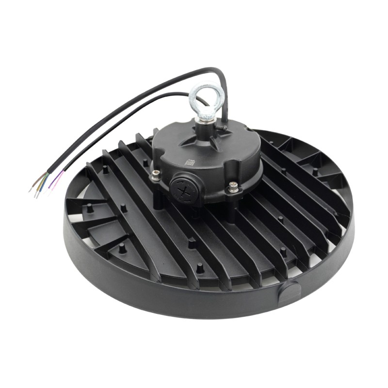 Wattage Selectable Modular High Power IP65 LED Highbay with superior efficiency of 180lm/W and IK08 impact resistant body. Interchangeable Lense design. Comes with 120° lense as standard, 90° lense options available as accessory. Integrated 0-10V dimmable LED driver pre -wired with 1500mm cable/280mm dim wire for ease of installation. 800mm safety cable included. Sensor base for plug and play Microwave or PIR Sensor Module with detection range up to 12m. Sensor options available as accessory. Suitable for -30° - +50° ambient working temperature.