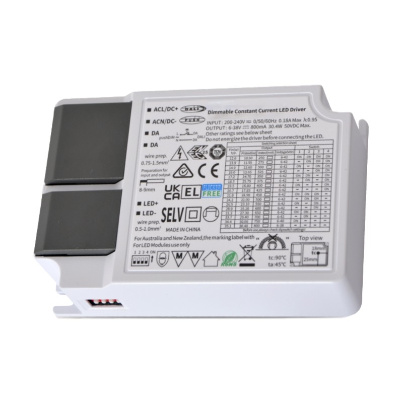 The DR159412 driver is a dimmable DALI-2 and PushDIM driver with adjustable constant current. It is supplied complete with a cable for connection to the luminaire. Dimming range from 1 to 100%. No flicker and smooth dimming in all light conditions. Output current adjustment ( 10 levels ) by means of micro-switches. Support CBS , central emergency application. Independent cable clamps ( inlet / outlet ).