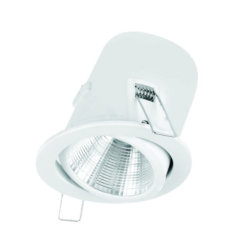 Round recessed LED Tilt Spotlight designed to provide best qualitative and effective lighting on display surfaces with superior luminaire efficiency of up to 135 lm/W. Wattage switch located at the back of the product for simple adjustment of light output even after the initial store opening. External driver with loop in/loop out connector allow rapid toolfree installation through push-fit terminals. 30° horizontal and vertical adjustable to adapt to changing point of sales environments in stores. Interchangeable high-efficiency reflectors available as accessories in 24°, 36° and 52° beam angles as well as Low glare louver and Honeycomb cover. Plug and Play high colour rendering COB (CRI95) enables product maintenance when reaching the end of product life.