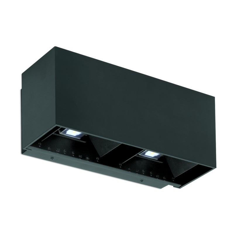 High quality die-cast aluminium multi-directional IP65 decorative wall lights. Twin Type product. Direct and Indirect lighting through adjustable reflectors. Simple adjustments can be made from the top or bottom of the product. Supplied with integrated non dimmable led driver for ease of installation. Aluminium die-cast finish in Black.
