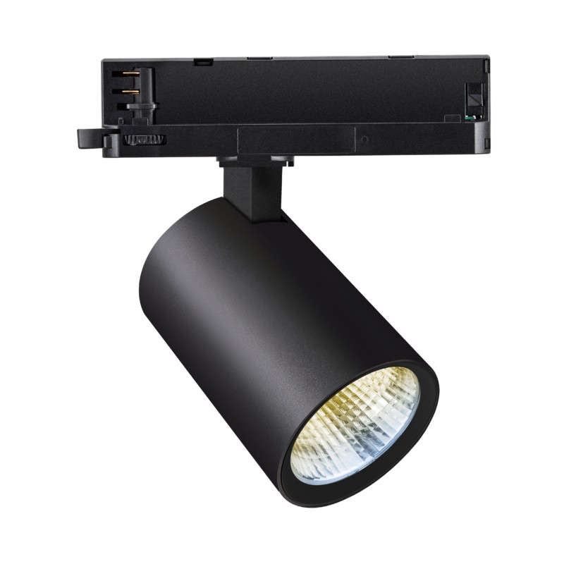 Colour & Wattage Switchable Adjustable Three -Circuit Track LED Spotlight designed to deliver flexible, high-quality, and effective lighting for display surfaces. Integrated in-track driver ensures a compact, sleek body finish when installed in track systems. Plug-and-play light source design enables quick, easy maintenance at the end of product life. Colour & wattage Switchable with switch conveniently located on the track adapter allows simple adjustment of light output and colour temperature, even after installation. Flexible aiming with 350° horizontal rotation and 90° vertical tilt, ideal for adapting to changing retail or display environments. Interchangeable high-efficiency reflector supplied in 55° beam angle. Opional reflectors available in 18°, 24° and 38°